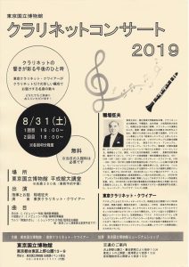 東京国立博物館 クラリネットコンサート 2019年8月31日(土) 開場:- 開演:15:00(Aプログラム)/17:00(Bプログラム)予定※各40分程度 会場:共有: クリックして X で共有 (新しいウィンドウで開きます) X Facebook で共有するにはクリックしてください (新しいウィンドウで開きます) Facebook いいね:いいね 読み込み中…